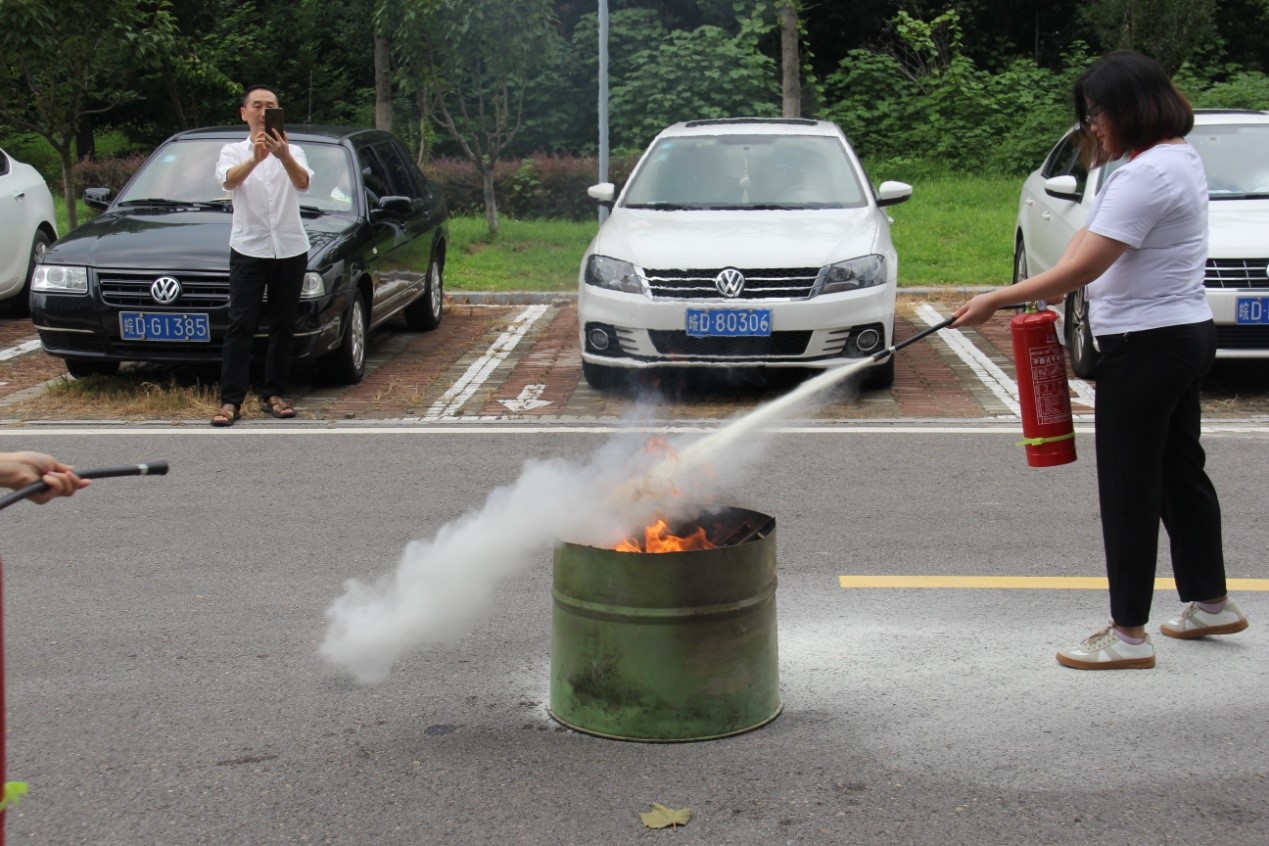 演練開始由消防工程師為大家講解辦公樓內各種滅火設備的功能及使用方法,以及如何做好防護避免受傷的注意事項;現場演練了如何打開消火栓、拋開水袋、對接水槍口、打開閥門等消防器械重要部位的操作和動作要領。然后組織員工迅速從步行梯安全有序撤離,在逃生黃金5分鐘內到達安全地帶。最后在辦公大樓西廣場現場示范了滅火器的正確使用方法,并由參加演練的員工進行了實操體驗。