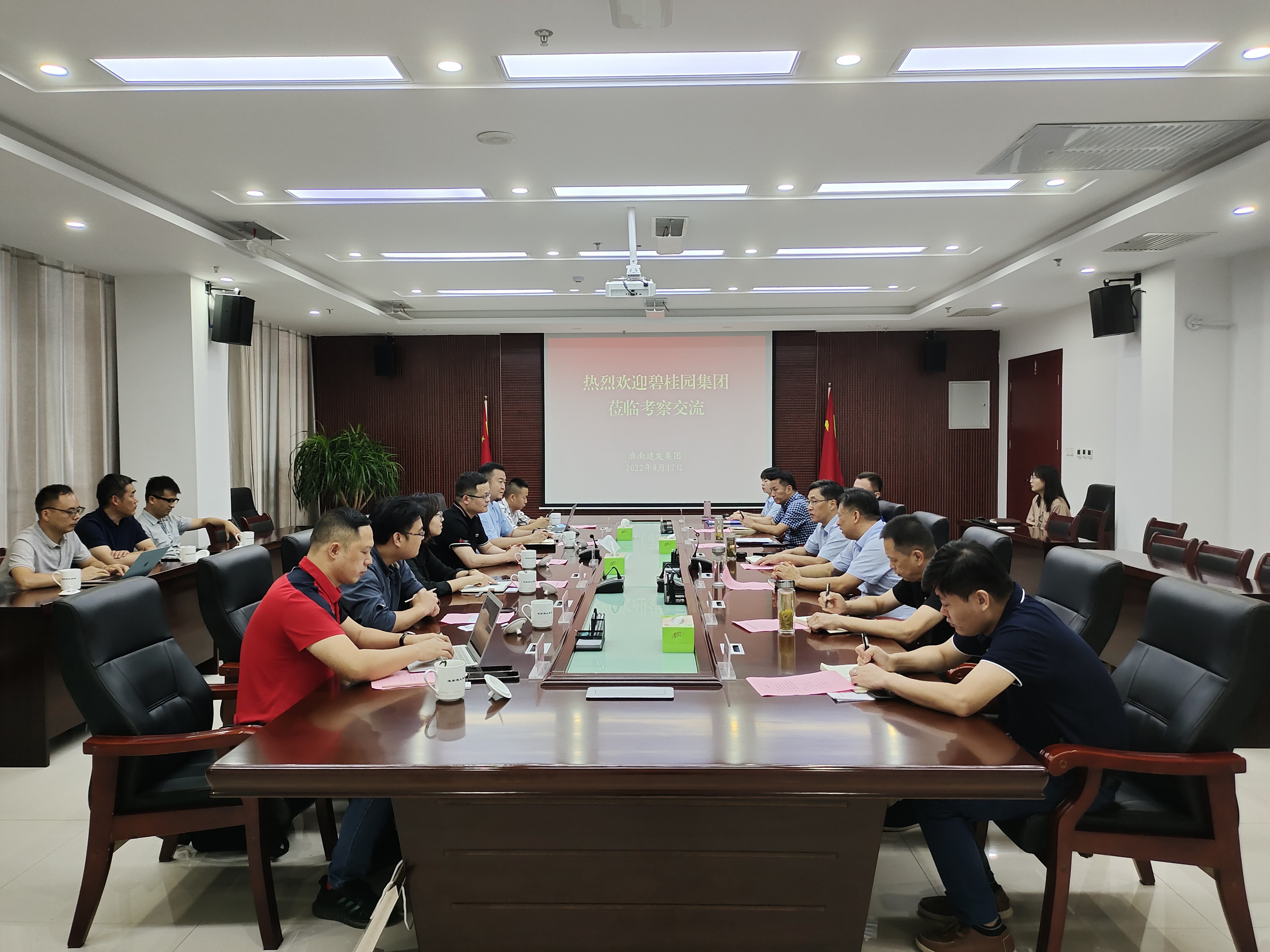 8月17日,碧桂園集團皖西北區(qū)域總裁錢劍勇、碧桂園集團鳳悅系品牌群執(zhí)行總裁吳小雄一行到訪淮南建發(fā)集團,集團公司黨委書記、董事長宋道河接待了來訪客商。雙方就淮南市城市基礎設施服務、房地產(chǎn)開發(fā)、文化旅游項目開發(fā)的合作、運營、投資等方面進行了深入交流。