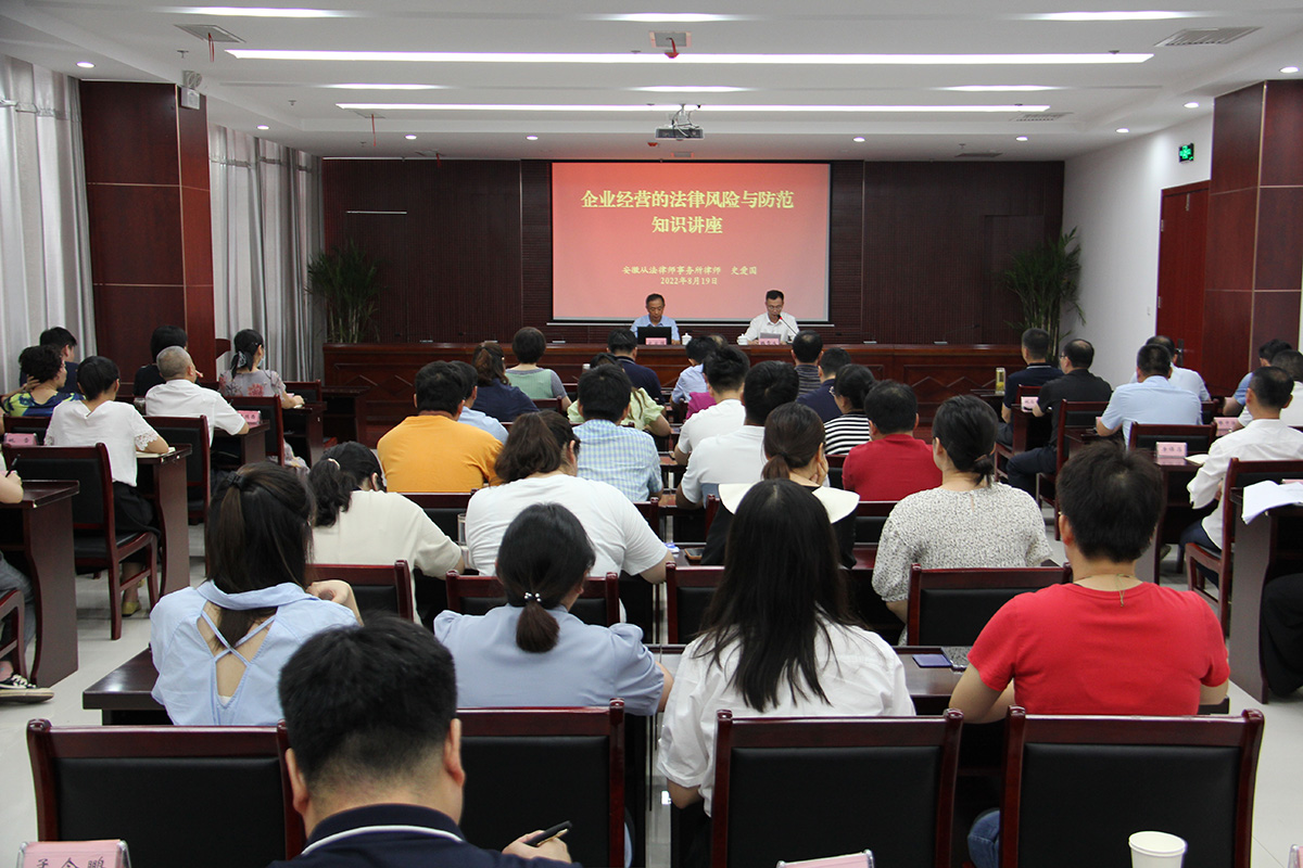 為深入學(xué)習(xí)貫徹習(xí)近平總書記全面依法治國(guó)新理念新思想新戰(zhàn)略,嚴(yán)格控制法律風(fēng)險(xiǎn),提升企業(yè)法制意識(shí),提高國(guó)有企業(yè)“依法治企”水平,建發(fā)集團(tuán)于8月19日下午開展了企業(yè)經(jīng)營(yíng)的法律風(fēng)險(xiǎn)和防范知識(shí)培訓(xùn)。本次培訓(xùn)邀請(qǐng)到公司法律顧問(wèn)、安徽從法律師事務(wù)所主任史愛(ài)國(guó)律師來(lái)公司為全體干部員工作專題法律講座。會(huì)議由集團(tuán)公司副總經(jīng)理韓雪冰主持,集團(tuán)公司全體干部員工參加了培訓(xùn)。