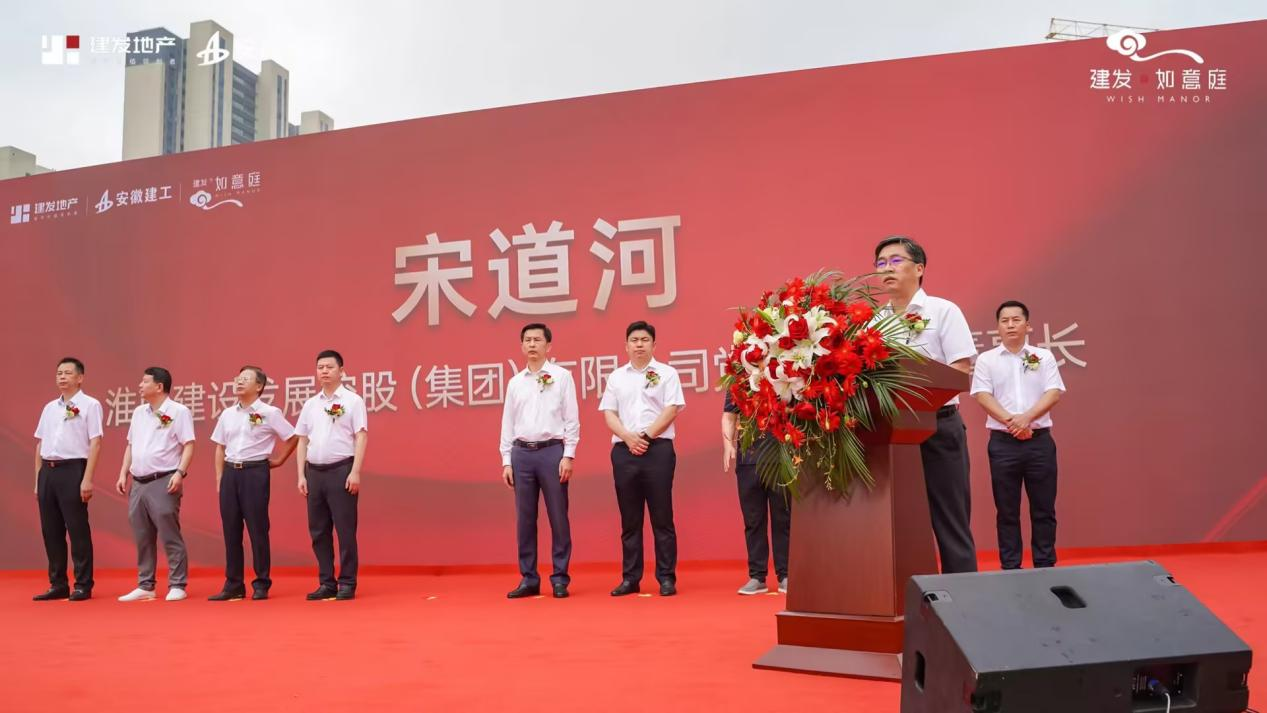 儀式上,淮南建發(fā)房地產(chǎn)開發(fā)有限公司項目總經(jīng)理戴建新、安徽建工集團(tuán)總承包公司黨委書記、總經(jīng)理傅宏林、淮南建發(fā)集團(tuán)黨委書記、董事長宋道河先后致辭。