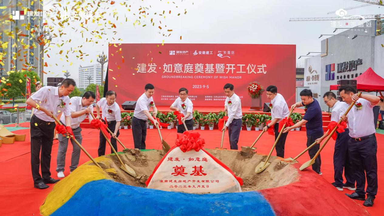 隨著全場倒計時,上午11時8分奠基儀式正式啟動,八門金色禮炮齊鳴、五彩砂和彩帶隨風(fēng)飄揚(yáng),出席儀式的領(lǐng)導(dǎo)、嘉賓一起揮動“金鏟”,為項目完成奠基培土。至此,建發(fā)·如意庭項目奠基暨開工儀式圓滿完成。這一刻,不僅標(biāo)志著建發(fā)·如意庭項目建設(shè)正式拉開大幕,對建發(fā)地產(chǎn)來說具有里程碑的意義,也定將在淮南建發(fā)集團(tuán)發(fā)展進(jìn)程中留下濃墨重彩的一筆。奮斗建工、擔(dān)當(dāng)建發(fā)、拼搏淮南,未來可期。