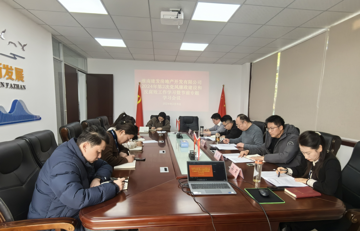 2月8日下午,淮南建發(fā)房地產(chǎn)開發(fā)有限公司在公司2樓會議室召開2024年度第2次黨風廉政建設和反腐敗工作專題學習會議,公司全體員工參加。