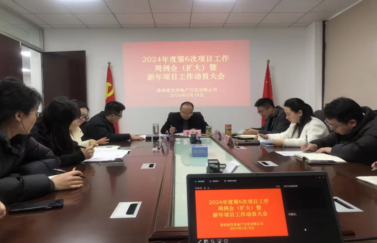 2月18日上午,淮南建發(fā)房地產(chǎn)開發(fā)有限公司在2樓會議室召開公司2024年第6次項目工作周例會暨新年項目工作動員大會,會議由項目總經(jīng)理戴建新主持,公司全體員工參加會議。會上,各部門負(fù)責(zé)人簡要匯報年前近兩周工作完成情況及本周主要工作計劃,項目總經(jīng)理戴建新做新年項目工作動員講話并布置安排各部門年后工作重點,分析了項目推進(jìn)存在的問題。