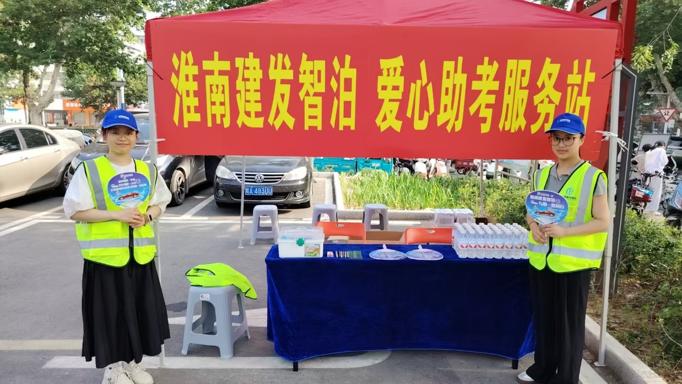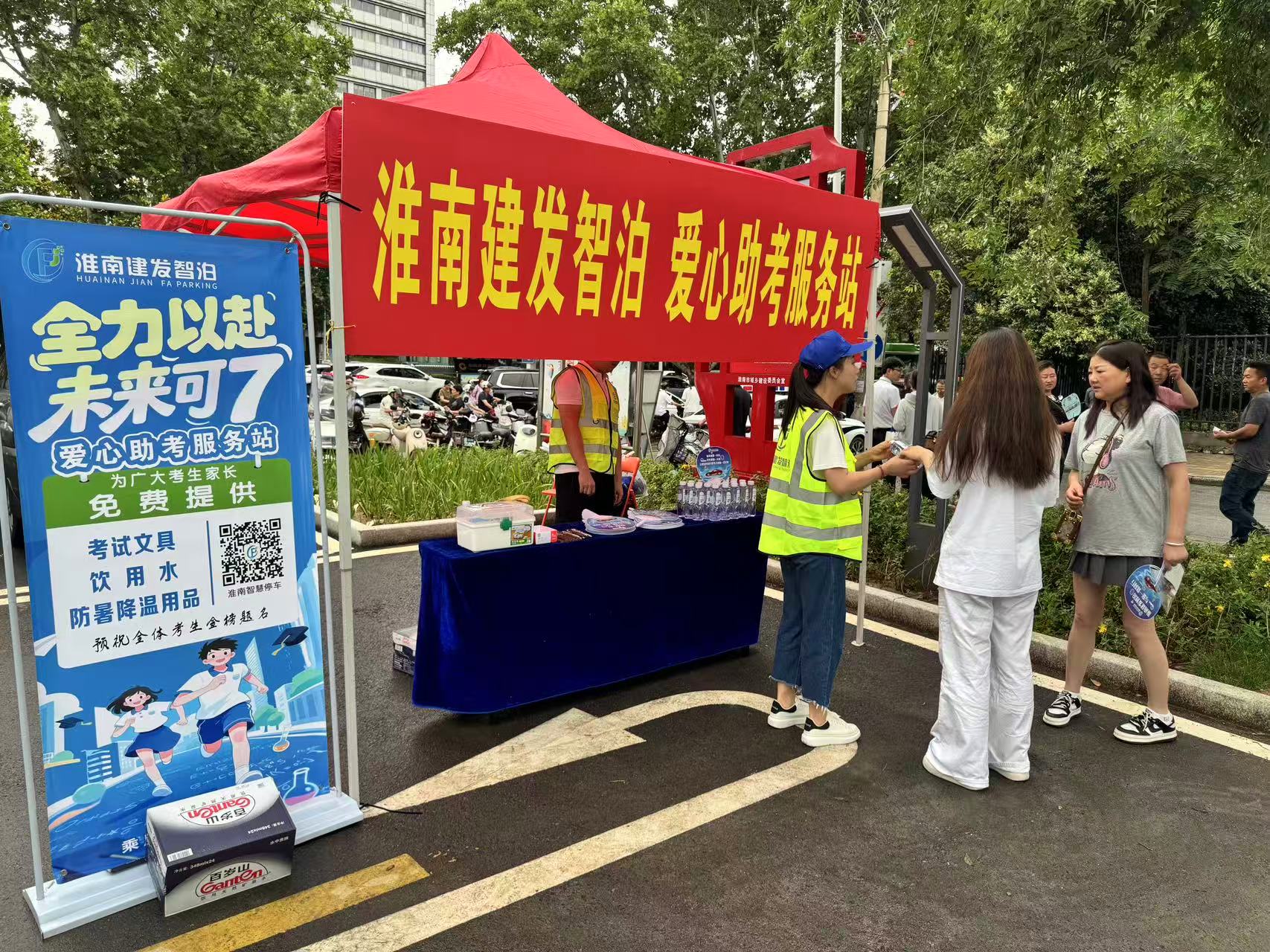 中高考期間周末,為服務(wù)考生及家長,營造溫馨、便利的應考環(huán)境,淮南建發(fā)智慧泊車管理有限公司積極履行社會責任,在淮南市第一中學及實驗中學考點周邊兩處重點停車場內(nèi),精心設(shè)立了“愛心助考服務(wù)站”。